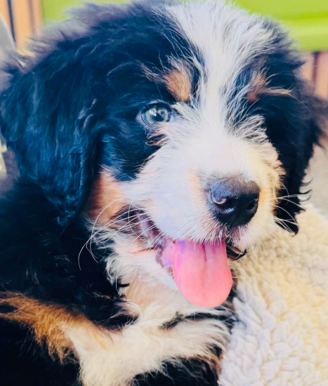 An Ultra Bernedoodle is a hybrid of Bernese Mountain dog and Poodle with a minimum of 60
